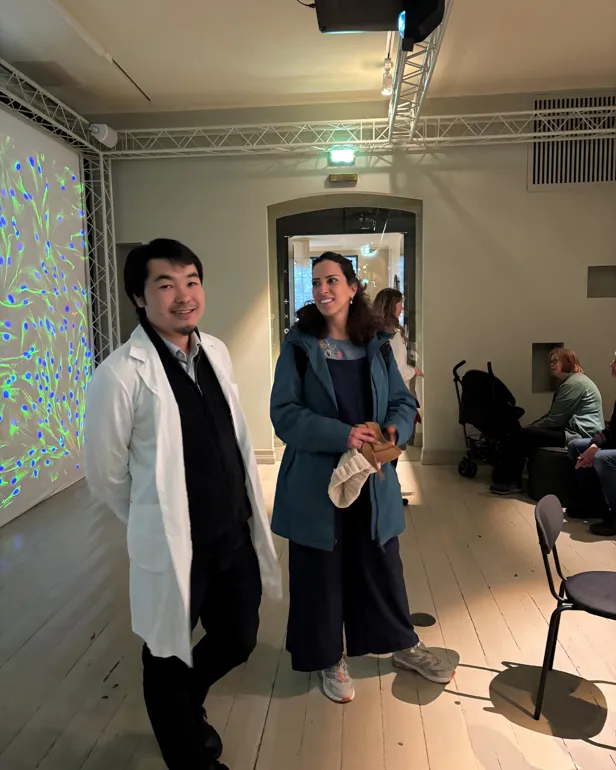 The "Illuminating Life" exhibition was a highlight. In addition to the stunning stem cell images taken through a microscope by Shuntaro Yamada, the exhibition was extended to include live 3D-printing of a human skull, microscopes displaying bone- and fat-producing cells derived from bone marrow mesenchymal stem cells, and information about the clinical Good Manufacturing Practice (GMP) production of cell-based medicinal products planned at Haukeland University Hospital. Shuntaro Yamada and Elise Aasebø engaged in conversations with curious kids, molecular biology and bioengineering students, and the general public.