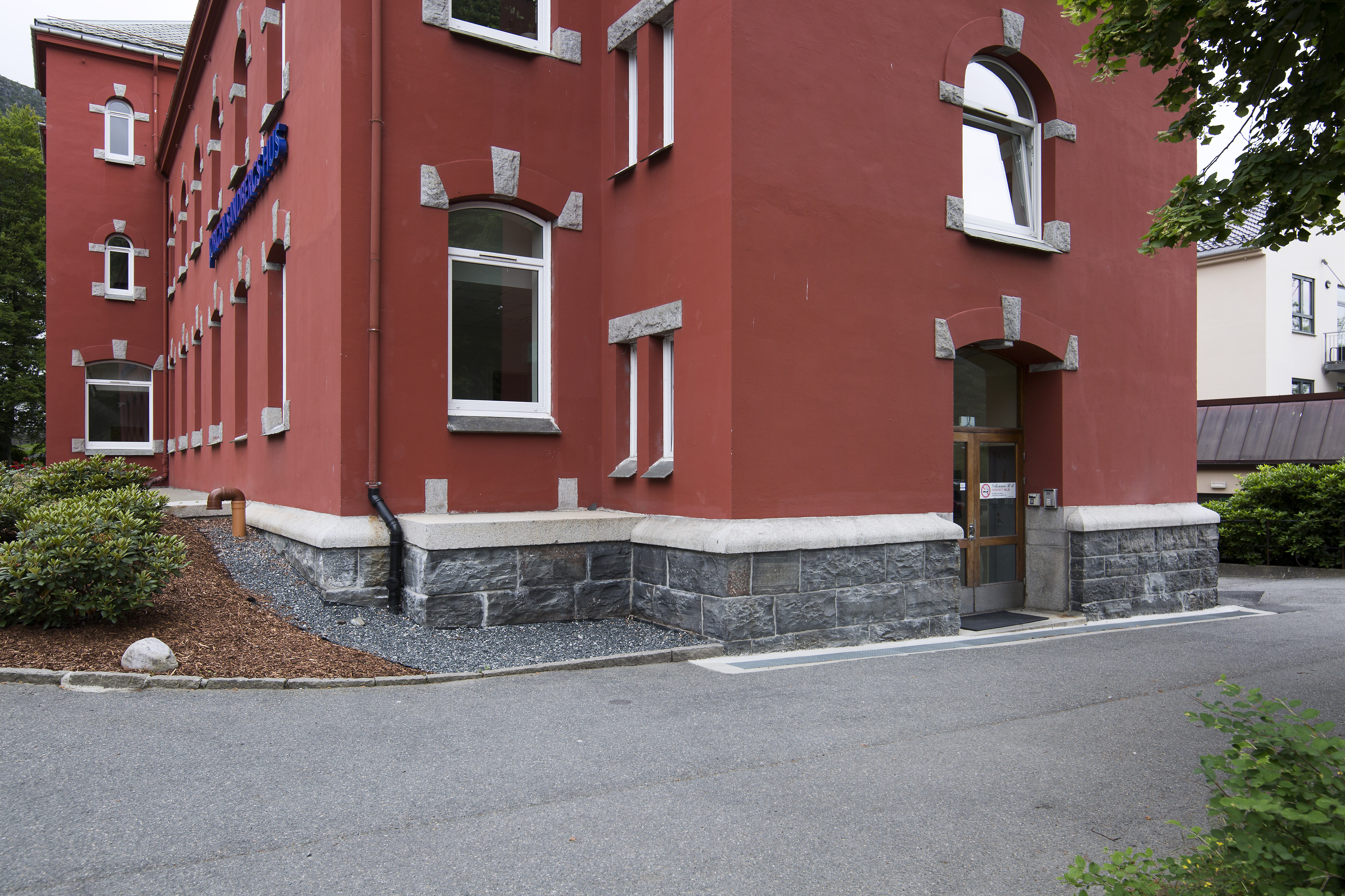 This is where the central administration of the hospital is situated. The red brick building is located in the park-area of the hospital, in front of The main hospital building (Sentralblokka).