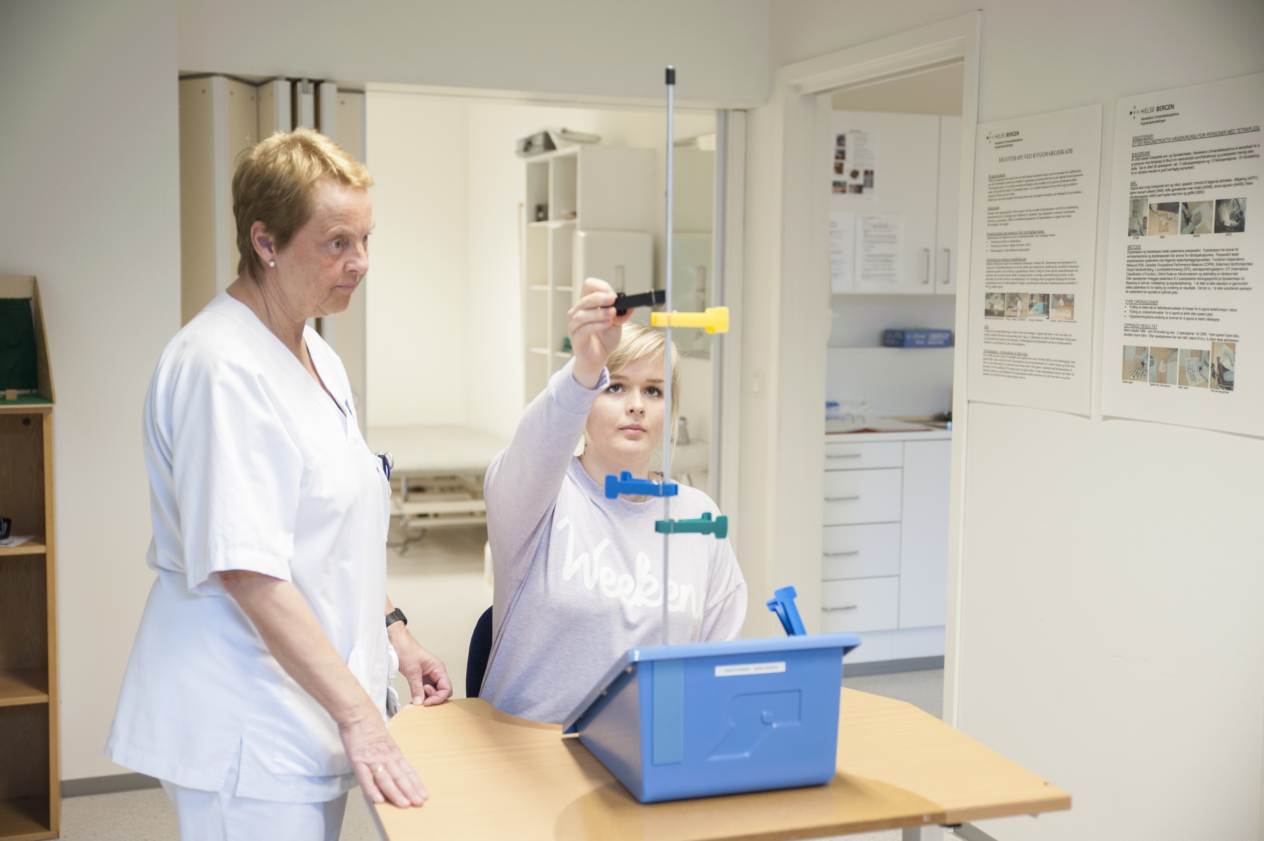 Pasientar frå Vestland kjem som regel direkte til Haukeland Universitetssjukehus og vert innlagt på Nevrokirurgisk avdeling ved nakkeskadar og Ortopedisk avdeling ved skadar i ryggen. Dersom skaden skjer i Rogaland, vil pasienten først bli innlagt på akuttavdeling i Stavanger. Spinaleininga blir kontakta av akuttavdelinga så snart det er kome inn ein pasient med ryggmargsskade.