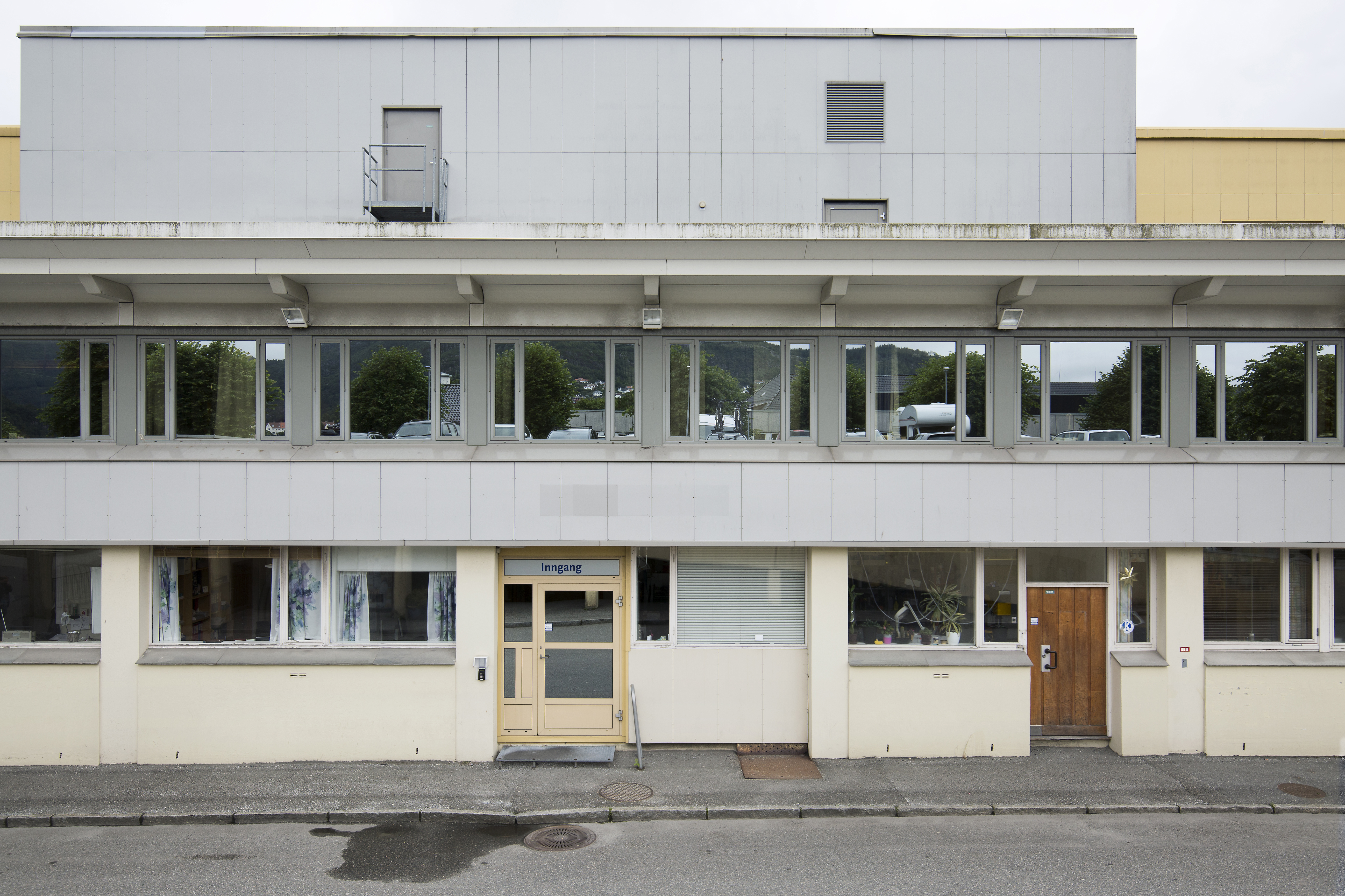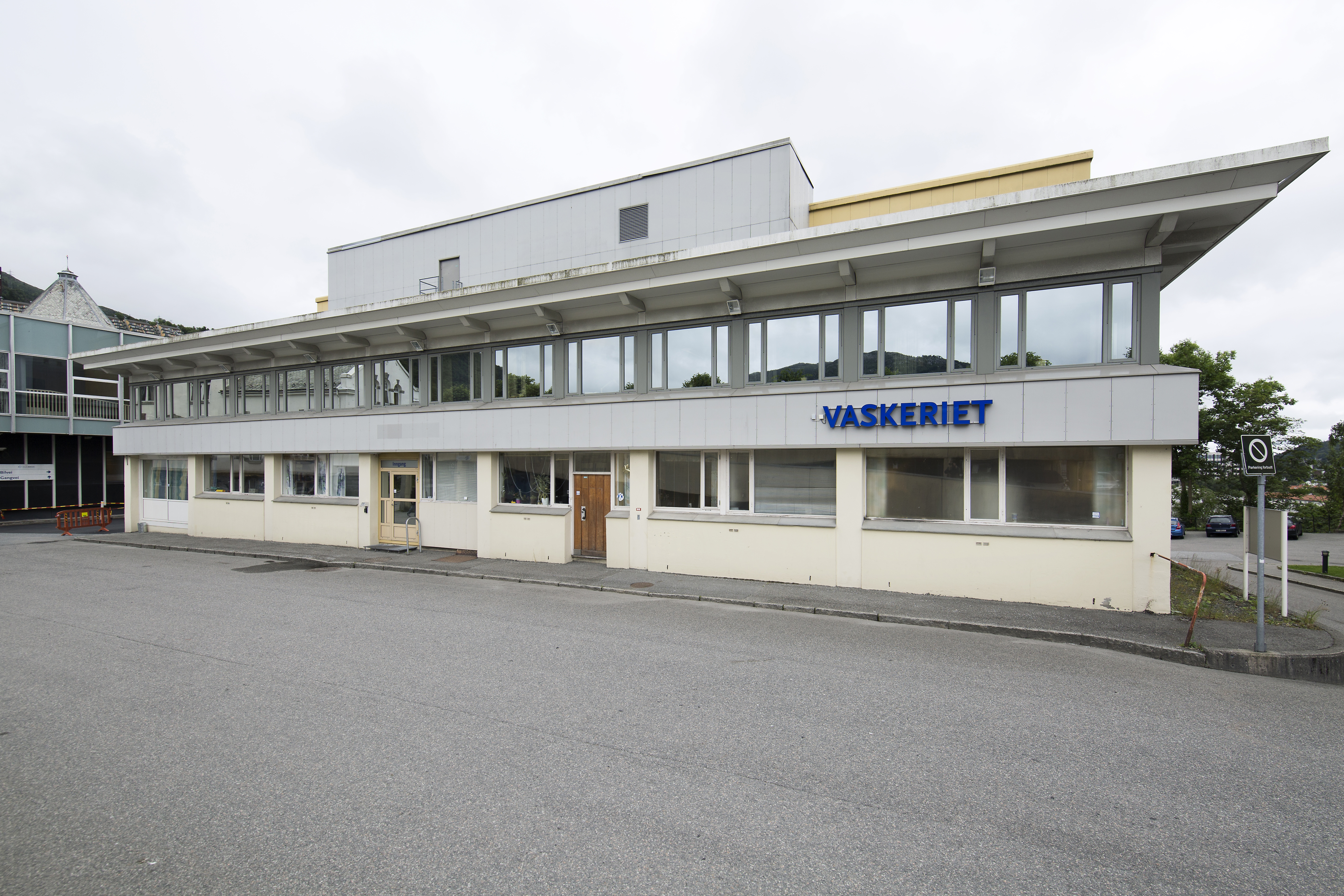 Vaskeribygget ligg mellom Haukeland hotell og Sentralblokka på Haukelandområdet. Innkøyrsel ved Haukeland hotell.