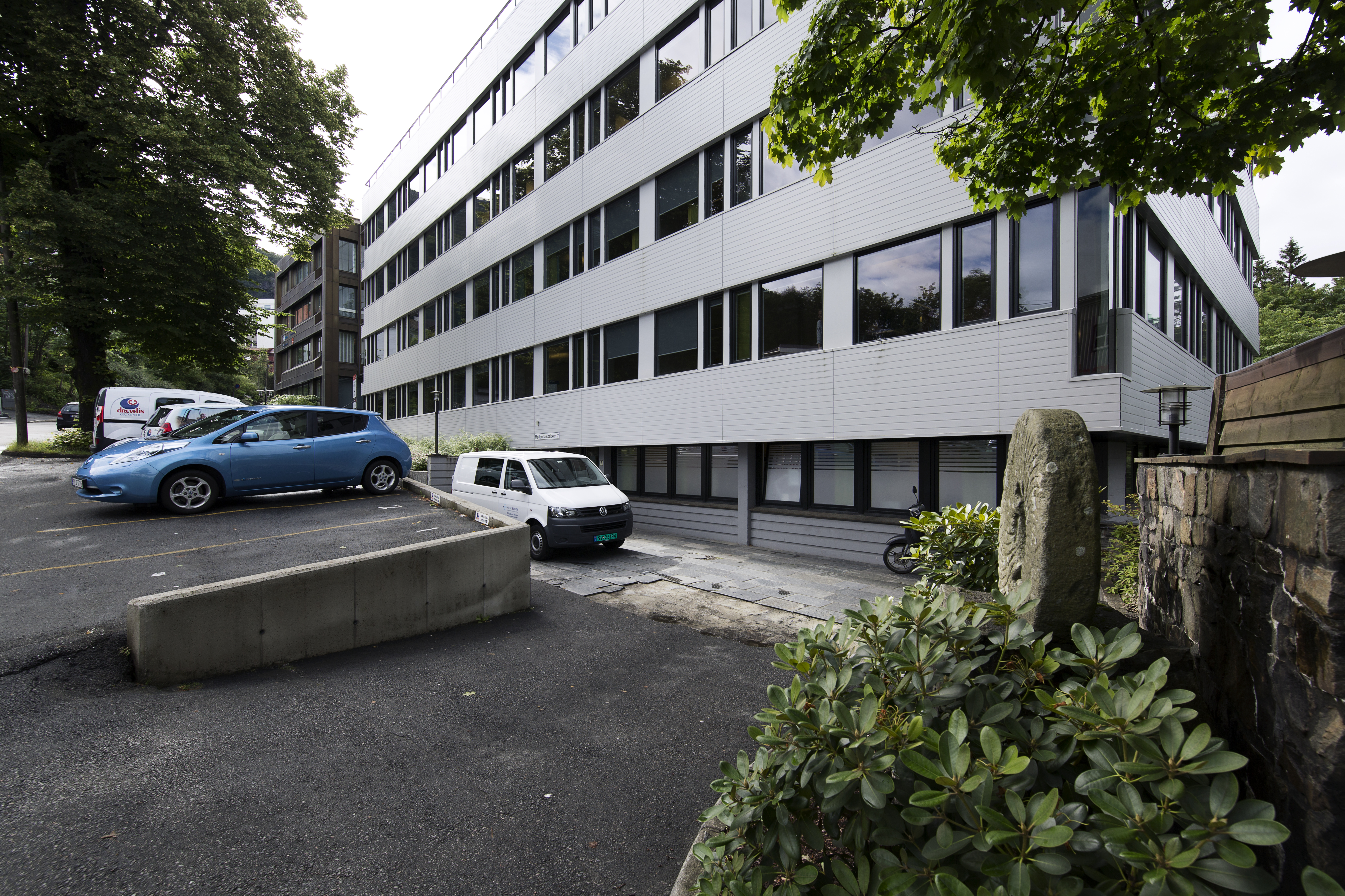 Møllendalsbakken 7 ligg nord for Sentralblokka, retning nedover mot Store lungegårdsvann.